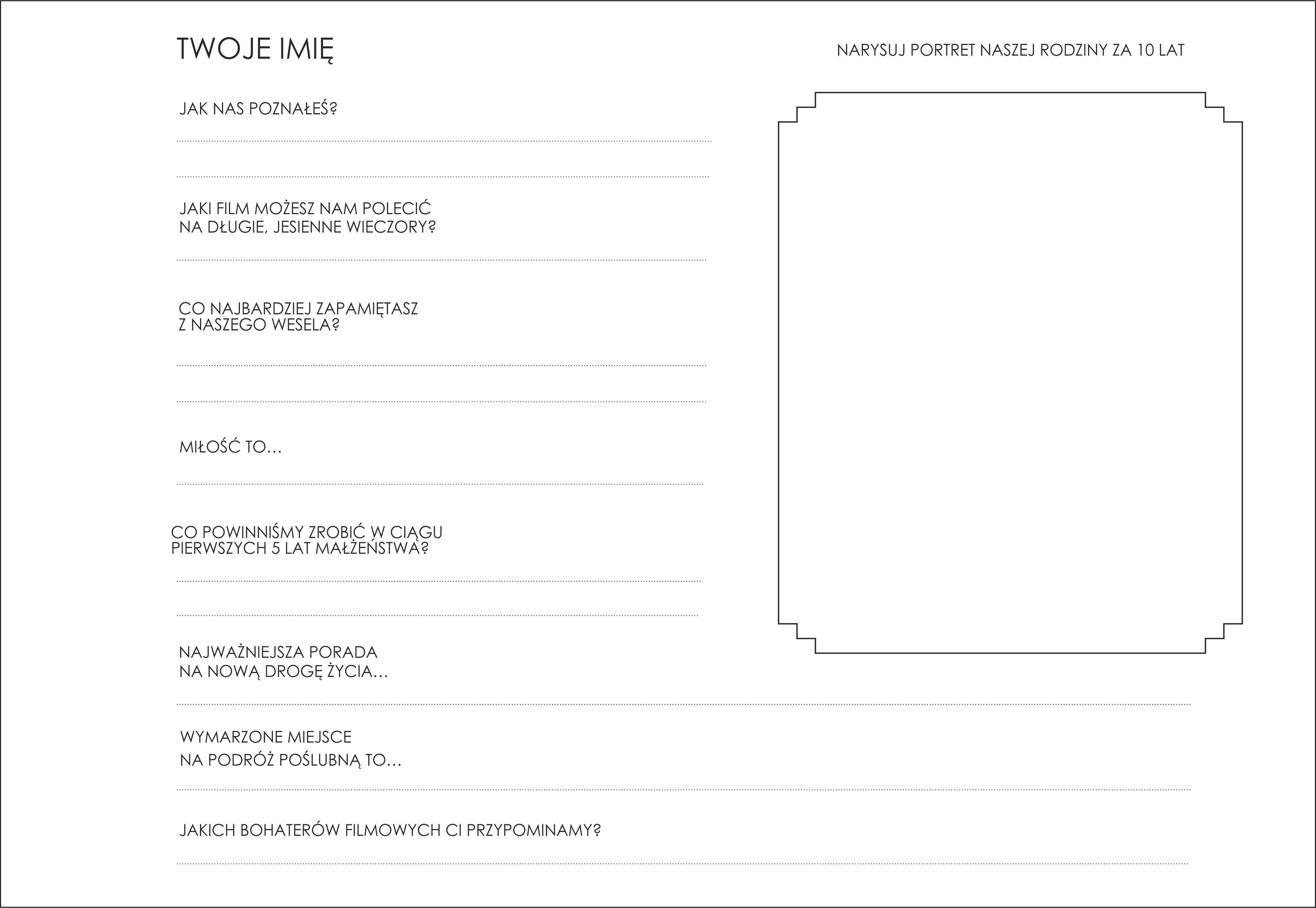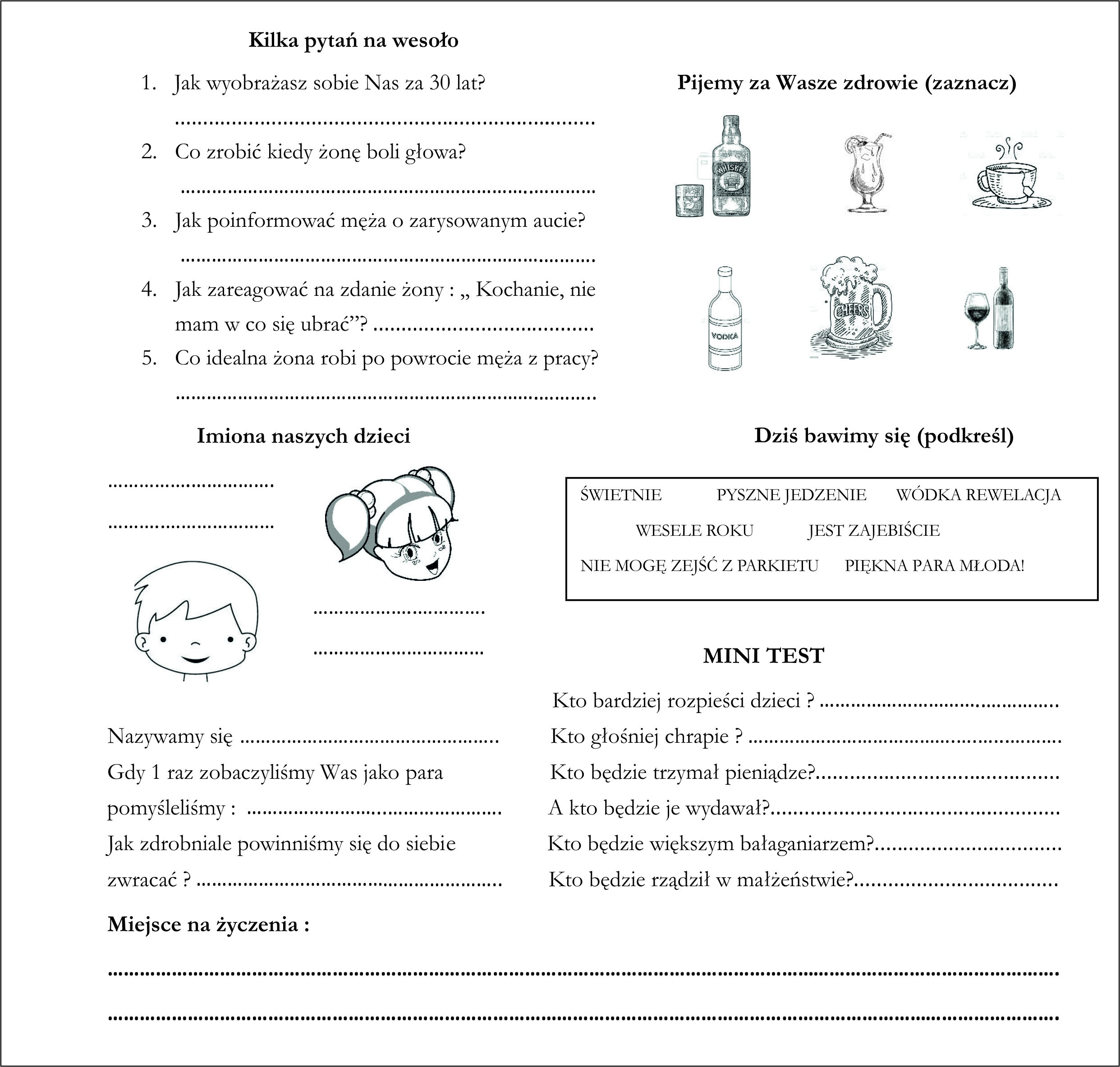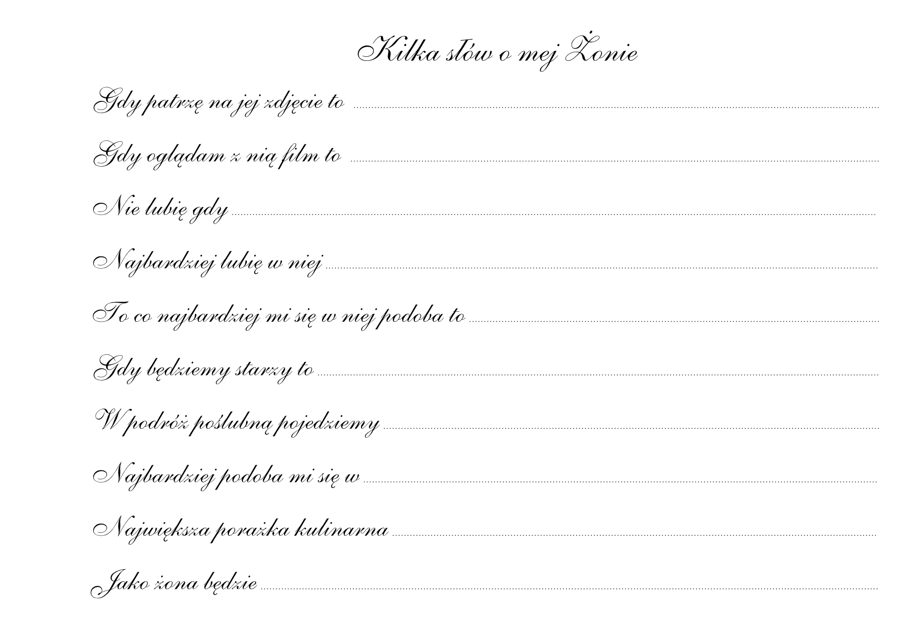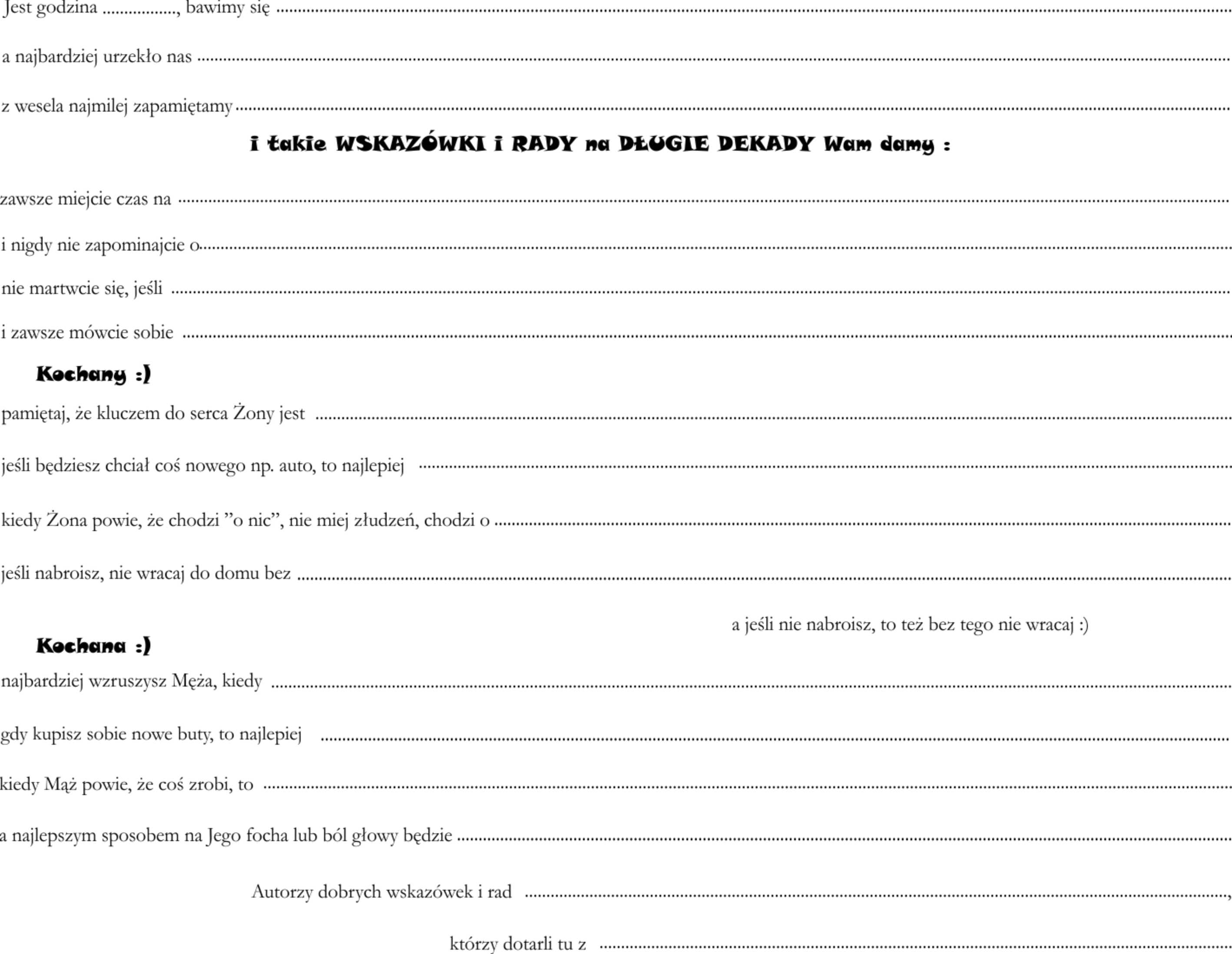 W miejscach wykropkowanych nie można nic zmieniać należy je wypełnić samodzielnie długopisem po otrzymaniu albumu/księgi wpisów
