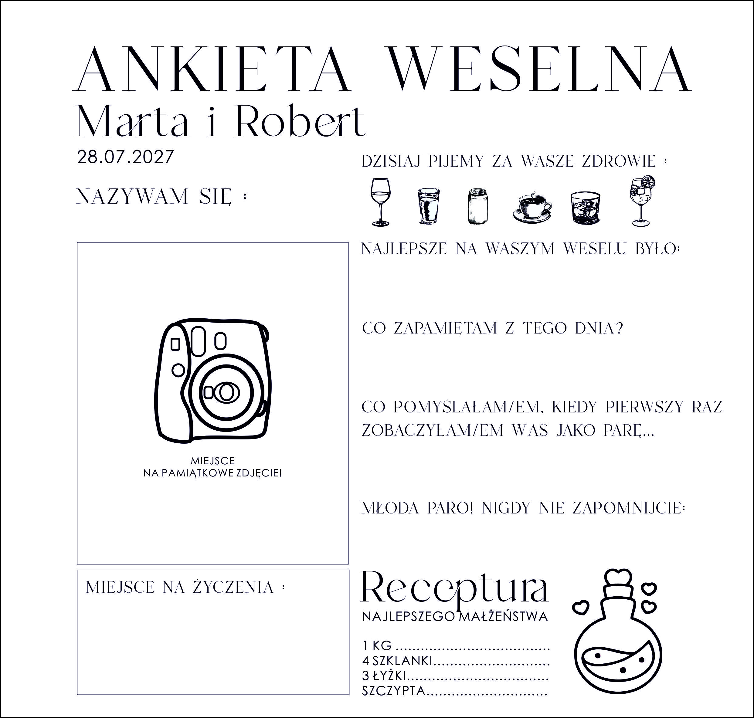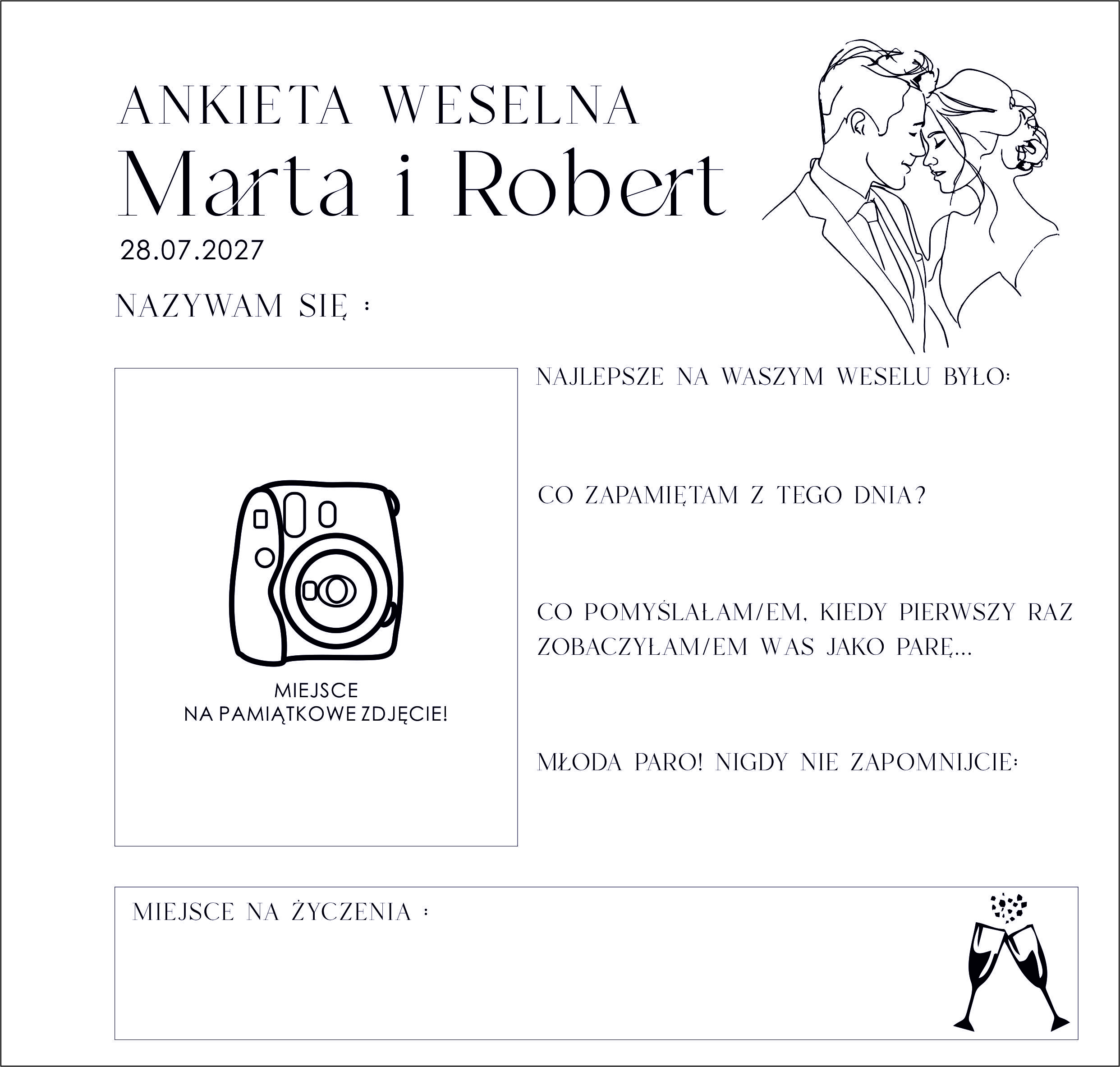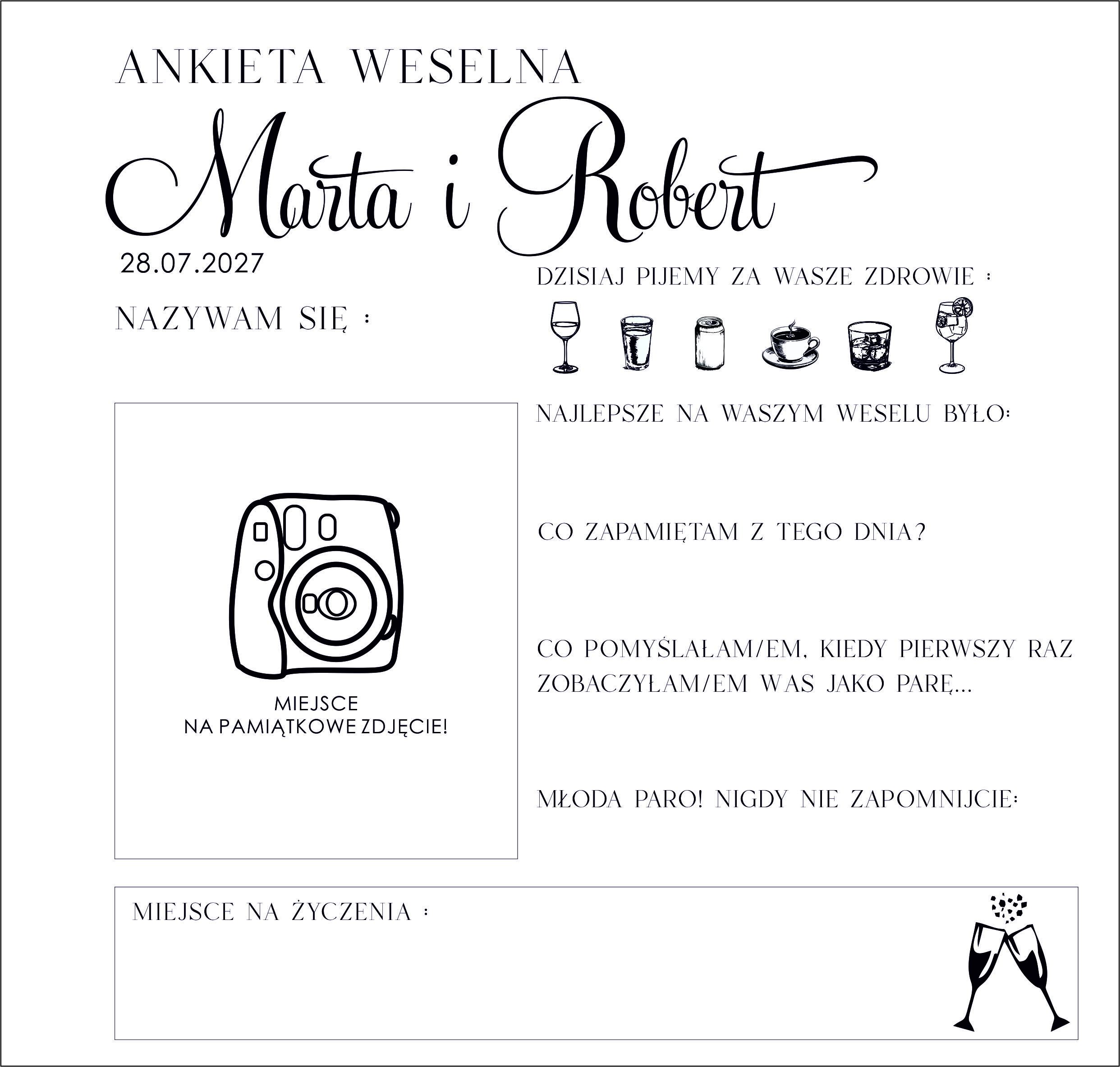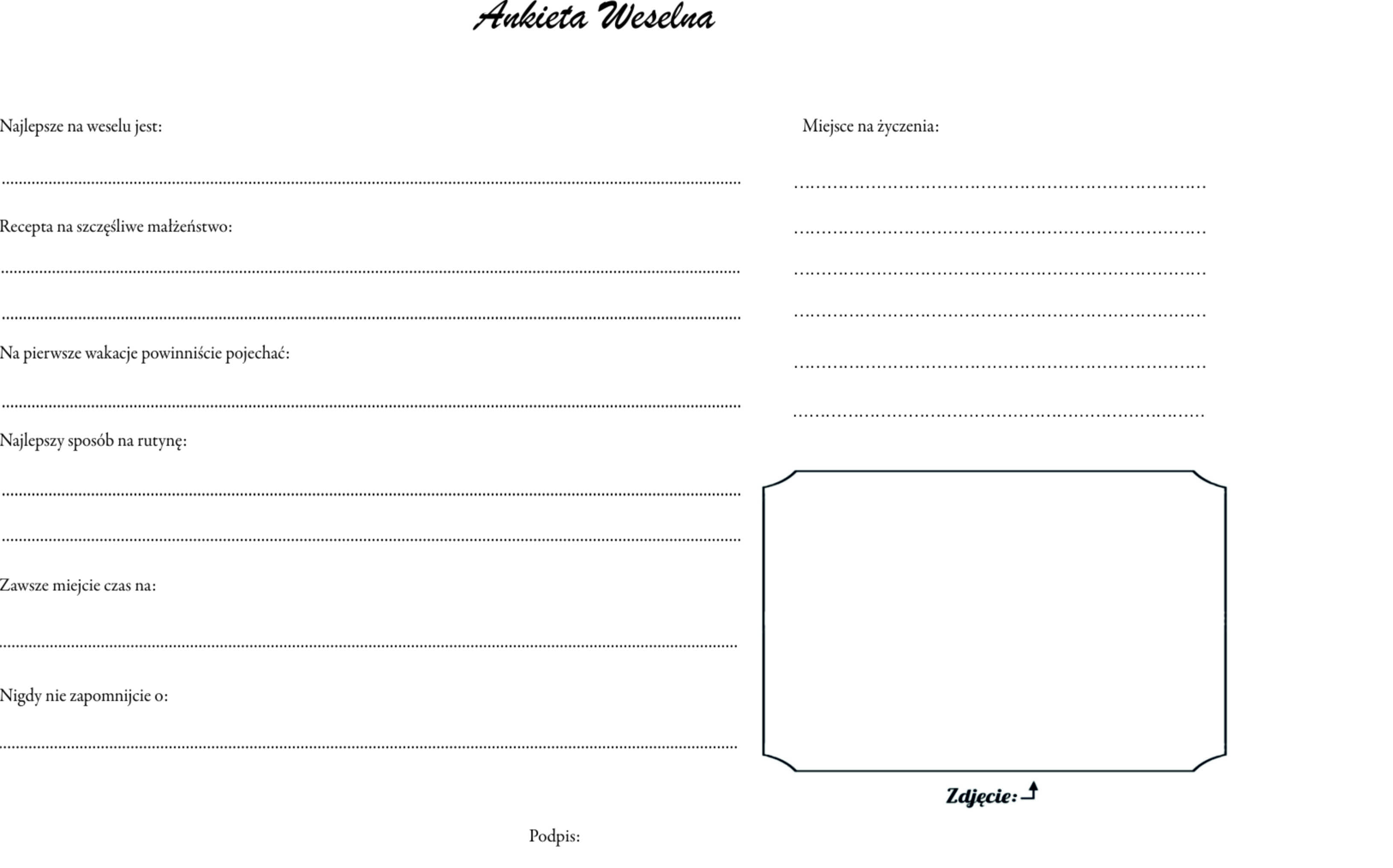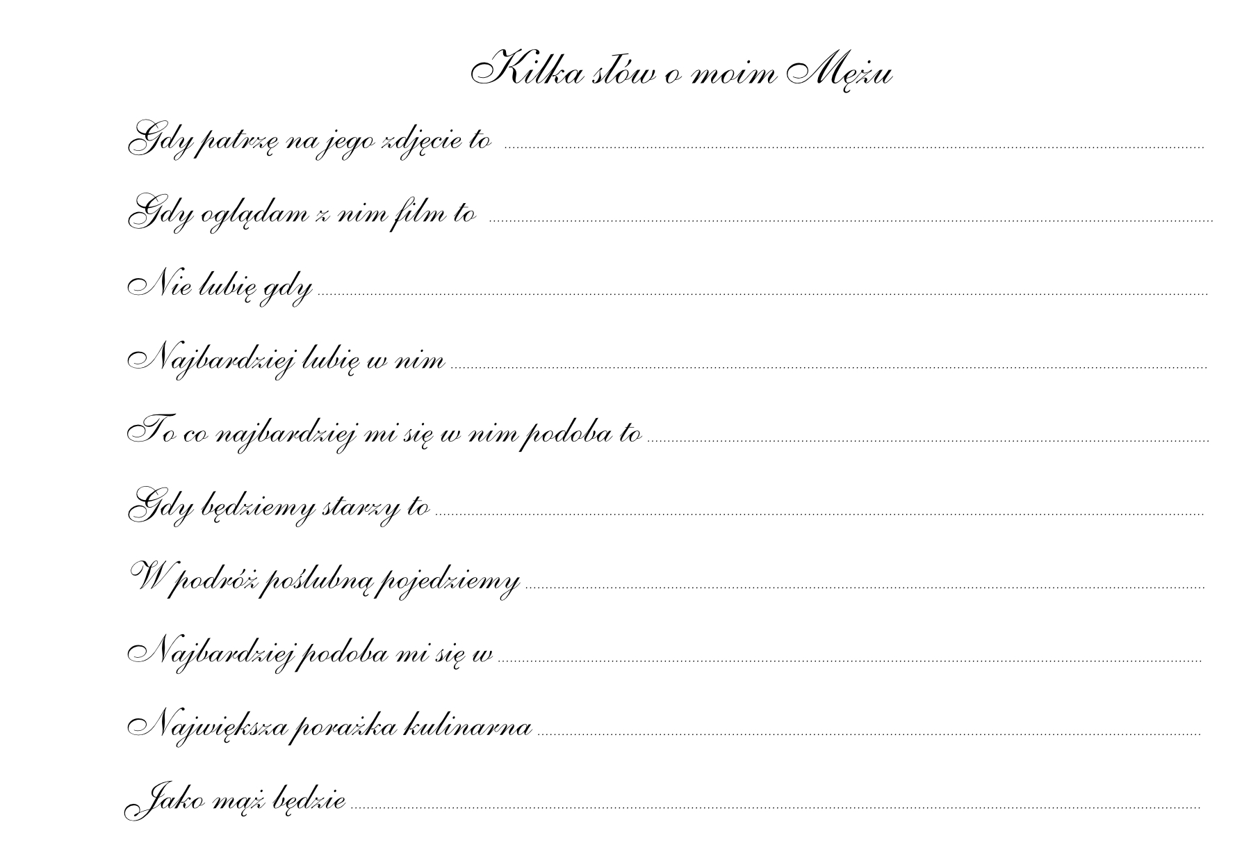 W miejscach wykropkowanych nie można nic zmieniać należy je wypełnić samodzielnie długopisem po otrzymaniu albumu/księgi wpisów