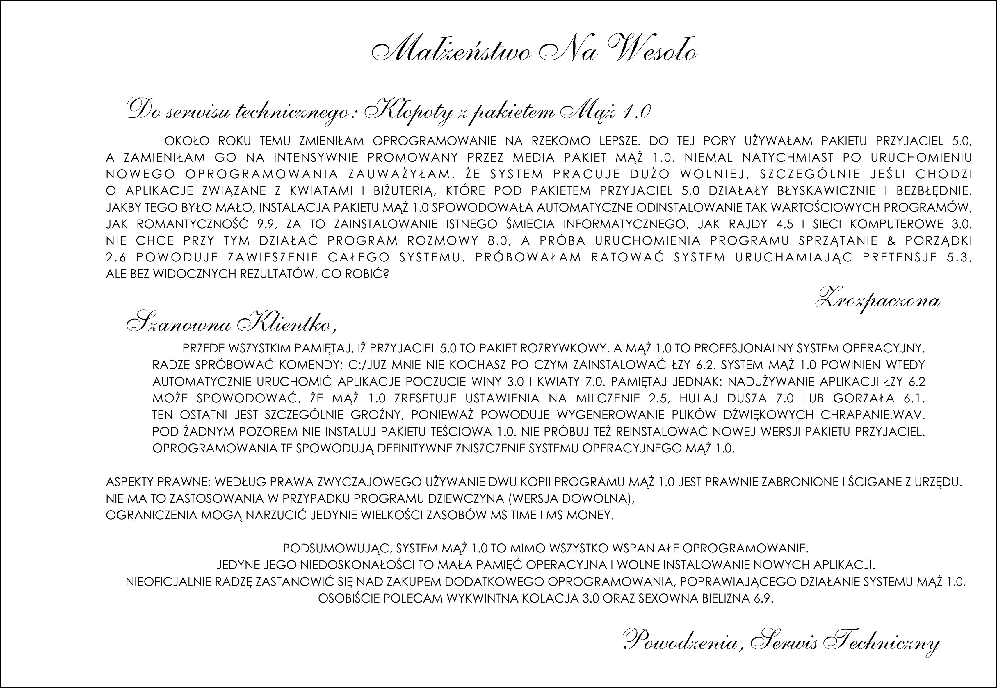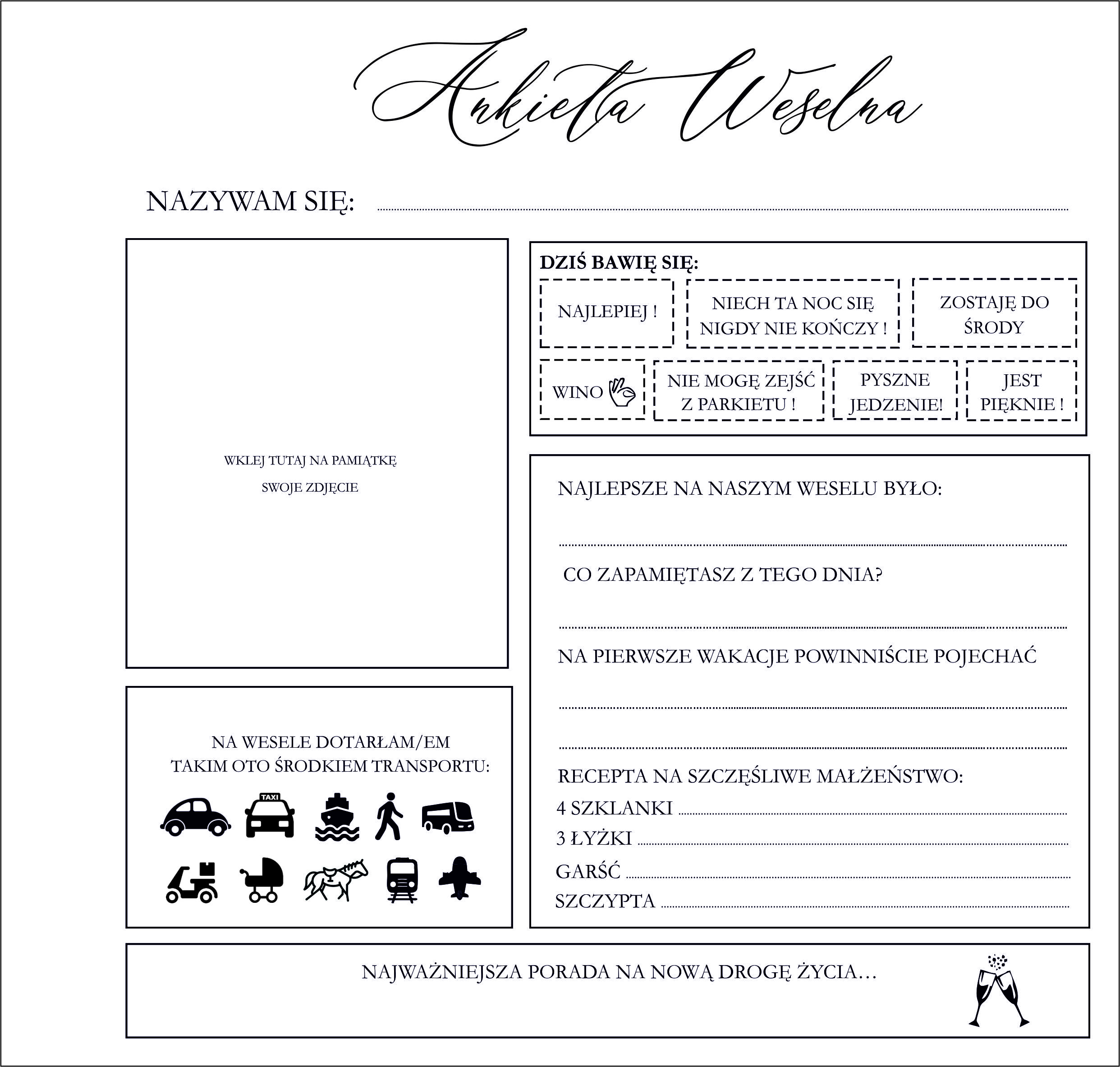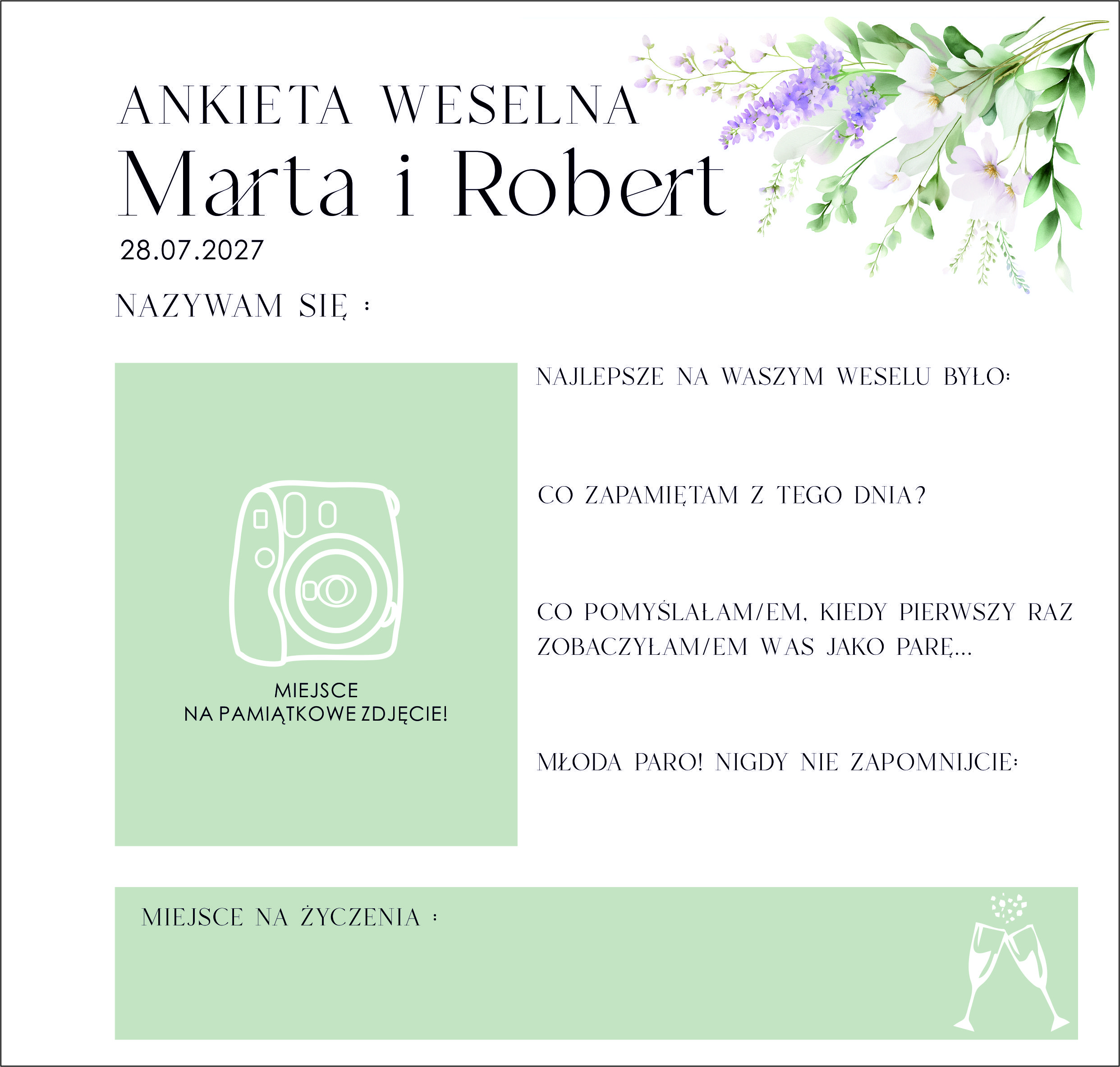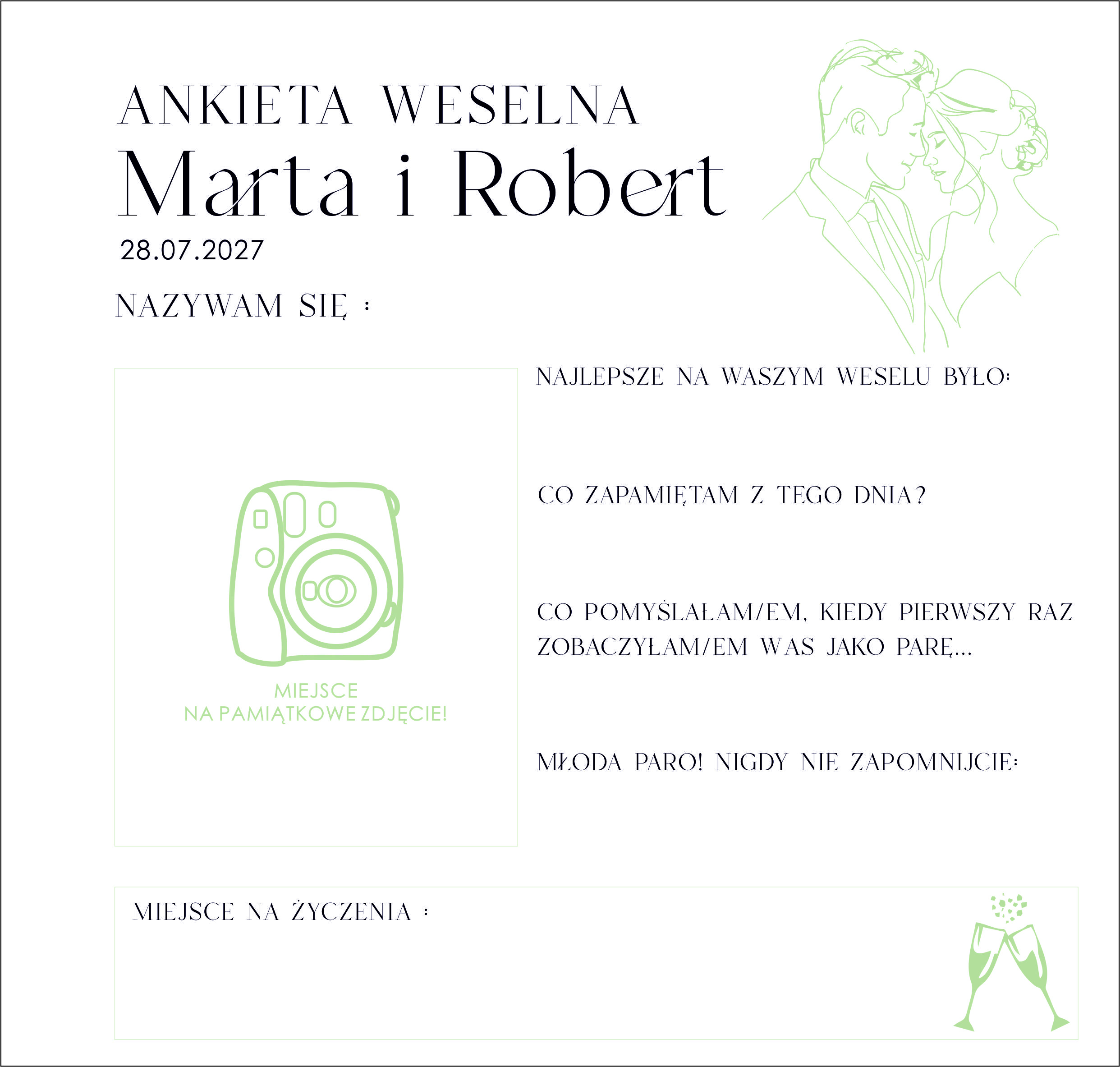 W miejscach wykropkowanych nie można nic zmieniać należy je wypełnić samodzielnie długopisem po otrzymaniu albumu/księgi wpisów