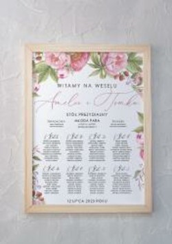tablica informacyjna dla gości weselnych pomoże przy rozmieszczeniu Gości na sali weselnej.